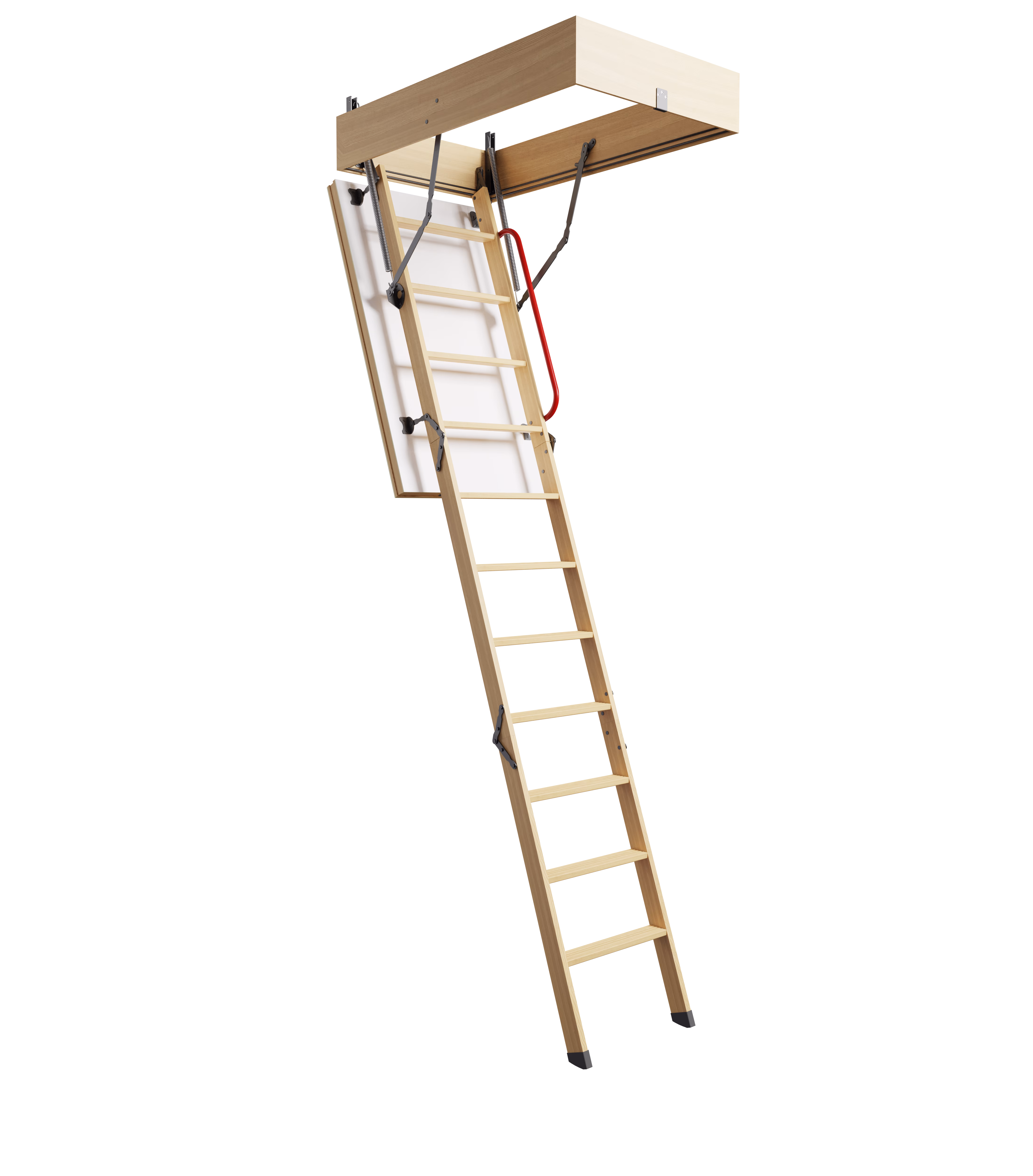 Наличие поручня, широкий проем и длина ступени в 440 мм позволяет удобно поднимать вещи, которые вы планируете разместить в чердачном пространстве.